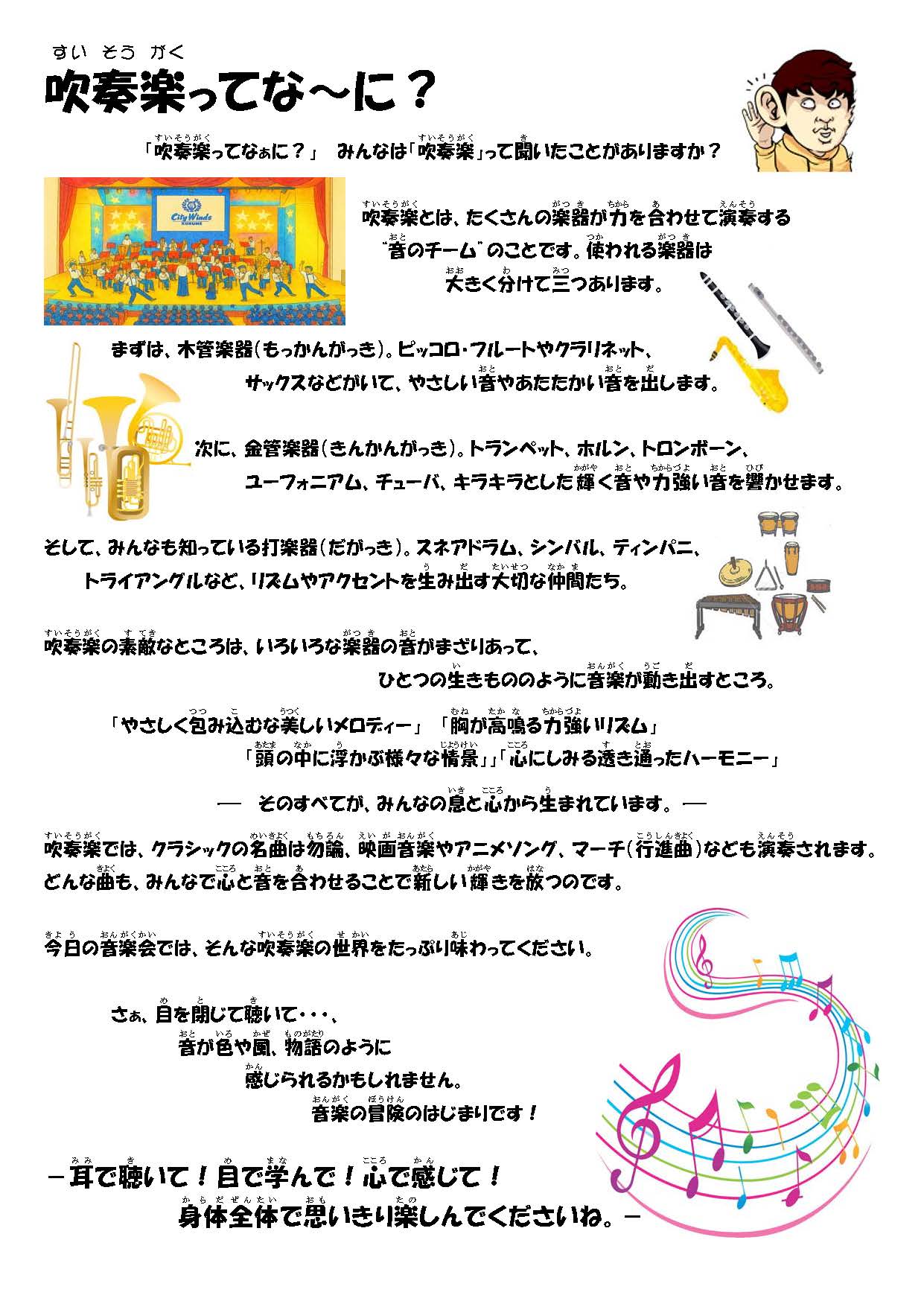 「耳で聴いて!目で学んで!心で感じて!」というCity Windsから子供たちへののメッセージ通り、子どもたちの心に