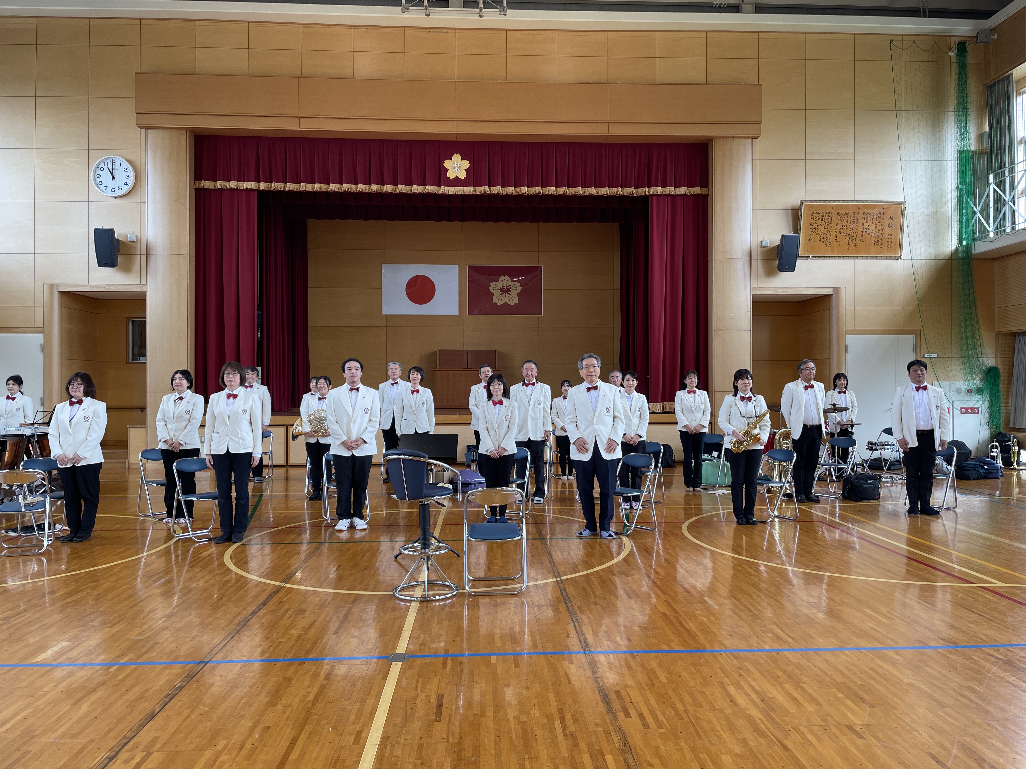 吹奏楽の豊かな響きで演奏させていただきました。自分たちの学校の歌が、吹奏楽団の響きで奏でられるという特別な体験に、
